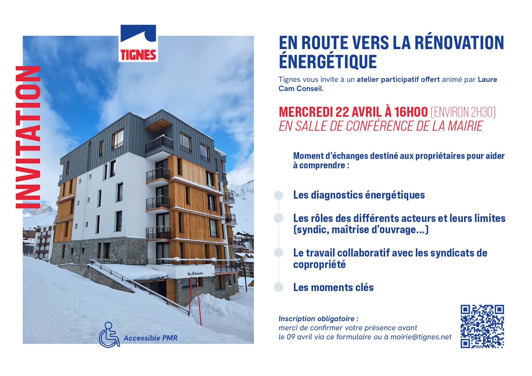 L'inscription est obligatoire est doit être faite avant le 9 avril via le formulaire ou à mairie@tignes.net