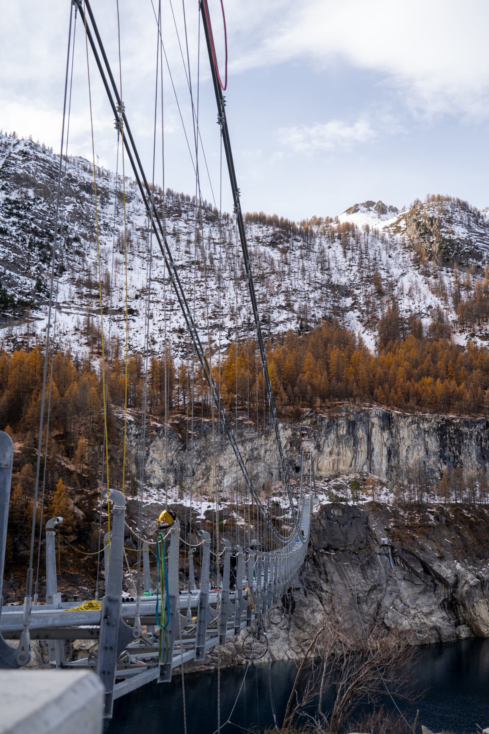 La passerelle Himalayenne située au-dessus du Lac du Chevril dans le secteur de la Reculaz est fermée au public.