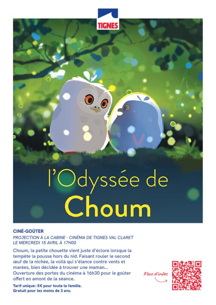 - L’Odyssée de Choum : Choum, une petite chouette, vient juste d’éclore lorsque la tempête renverse l’arbre qui l’abritait. Tombée du nid, elle s’élance cahin-caha, poussant le second œuf de la nichée à la recherche d’une maman…
