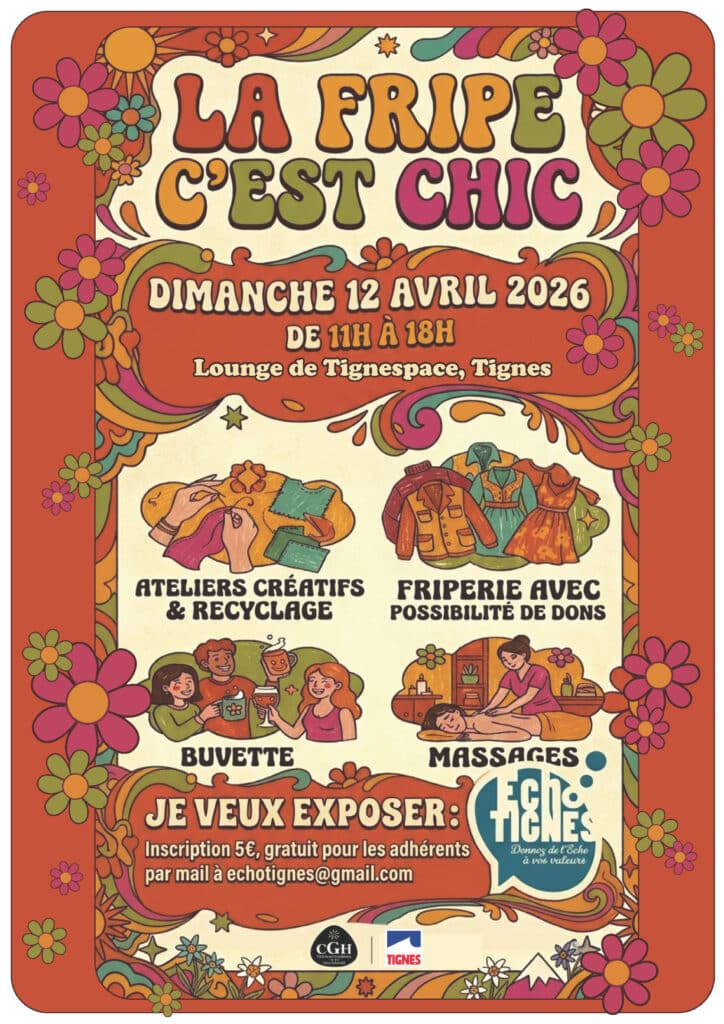 L'évènement "La Fripe c'est Chic" aura lieu le dimanche 12 avril de 11h à 18h au lounge de Tignespace.