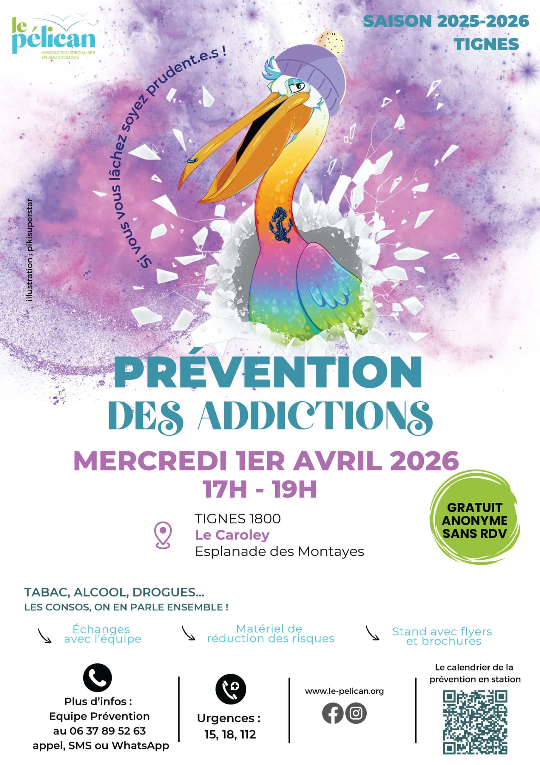 L'association du Pélican, spécialisée dans la réduction des risques liés au comportements addictifs, sera présente dans l'immeuble du Caroley le mercredi 1er avril de 17h à 19h.