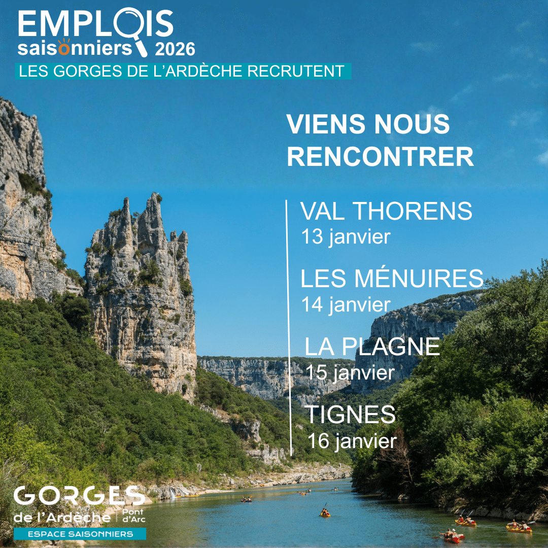 Deux Espaces Saisonniers des Gorges de l'Ardèche seront présents dans les locaux du Pôle Social de Tignes le vendredi 16 janvier de 9h à 12h