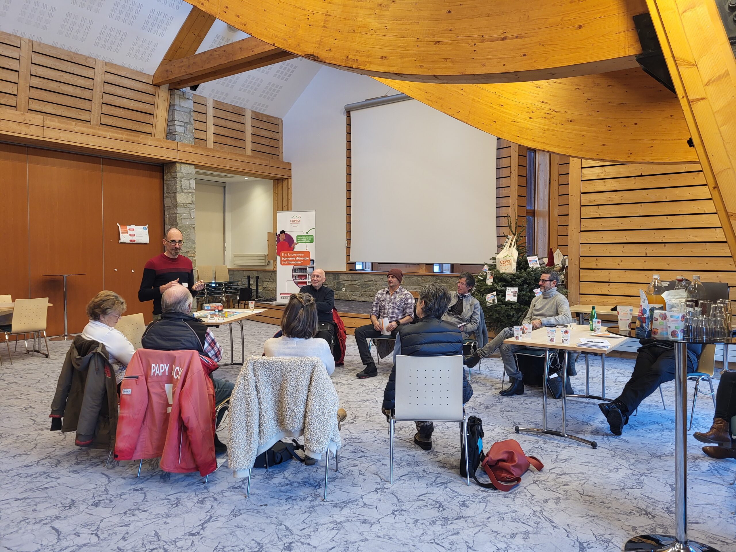 Intervention de la Copro des Possibles à Tignes, avec Denis Vannier, auprès de 9 membres de conseils syndicaux pour travailler sur le facteur humain et simuler une assemblée générale