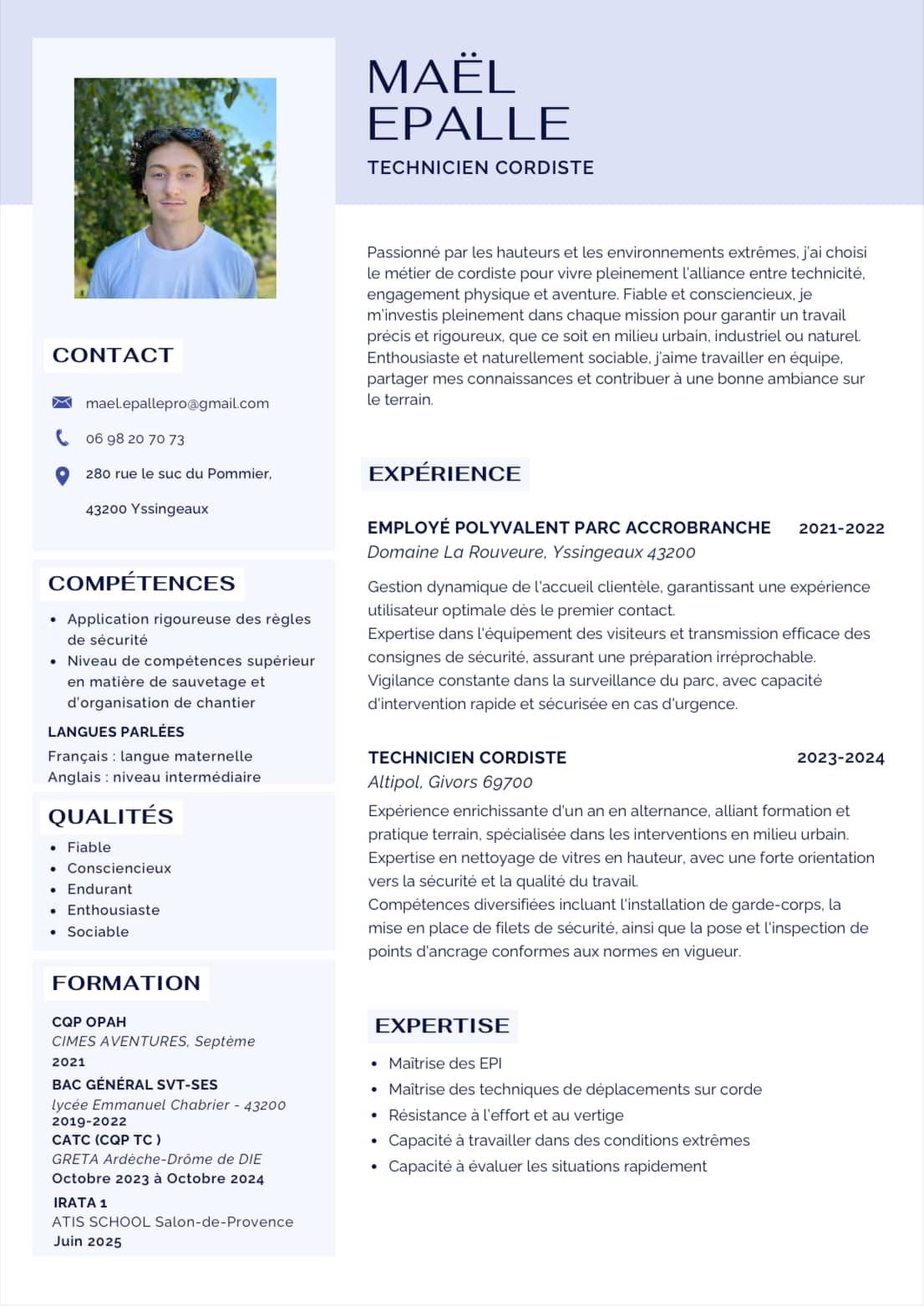 Poste recherché : Cordiste ou employé polyvalent