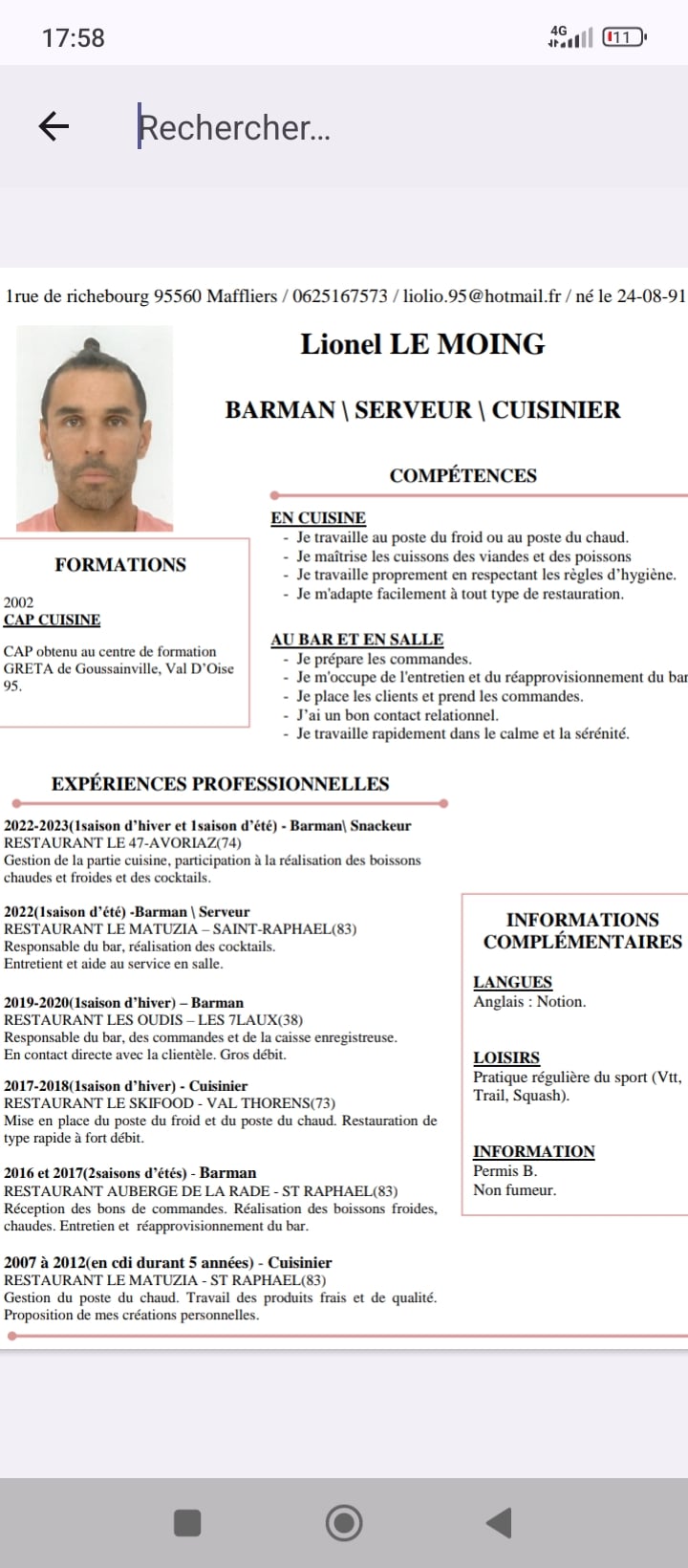 Poste recherché : Maître nageur sauveteur/barman/serveur/runner/vendeur